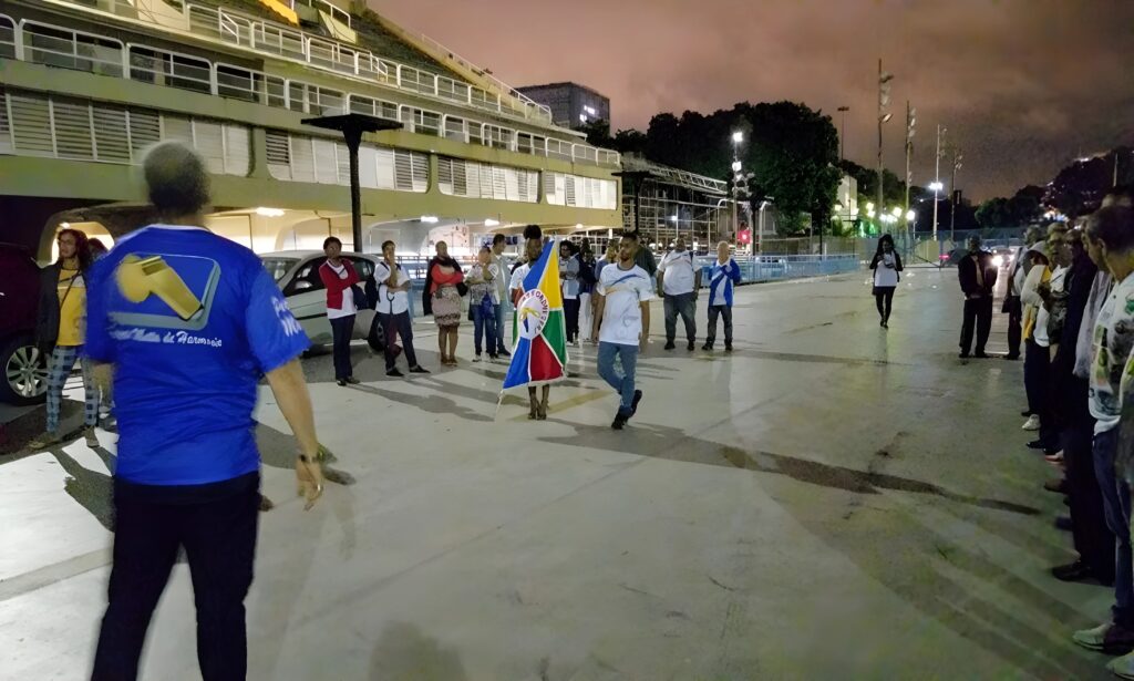 Não há nada que passe desapercebido.Casais de mestre-sala e porta-bandeira, comissões de frente, alas coreografadas e baterias ensaiam até a madrugada sob os olhares da equipe.